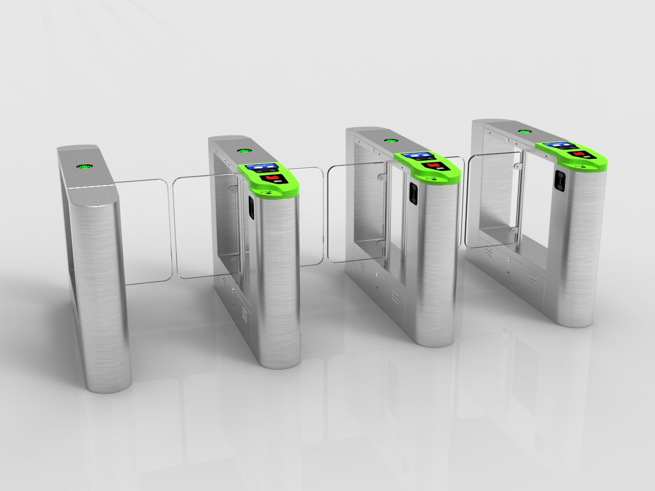 速通门外形采用不锈钢板冲压成型,造型美观大方、防锈、耐用,并且对外采用标准电气接口,能方便地将磁卡、条码卡、ID卡、IC卡等读卡器集成在本设备上,为出入人员提供文明、有序的通行方式,同时又可杜绝非法人员出入;在出现紧急情况时,保证通道畅通无阻,方便人员及时疏散。摆闸分为单机芯和双机芯,单机芯用于单通道和多通道,双机芯用于多通道。